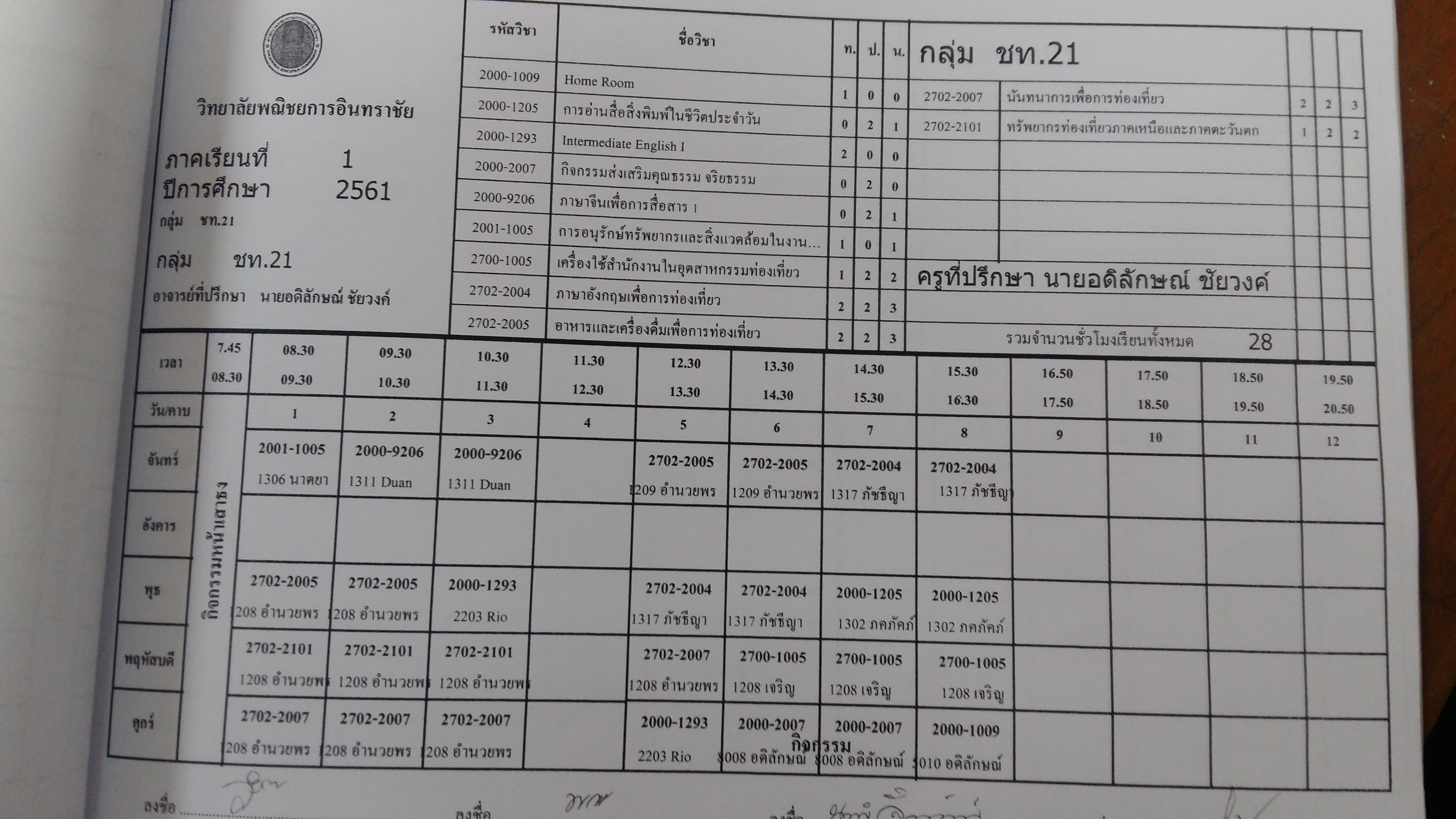 ตารางเรียนปวช.