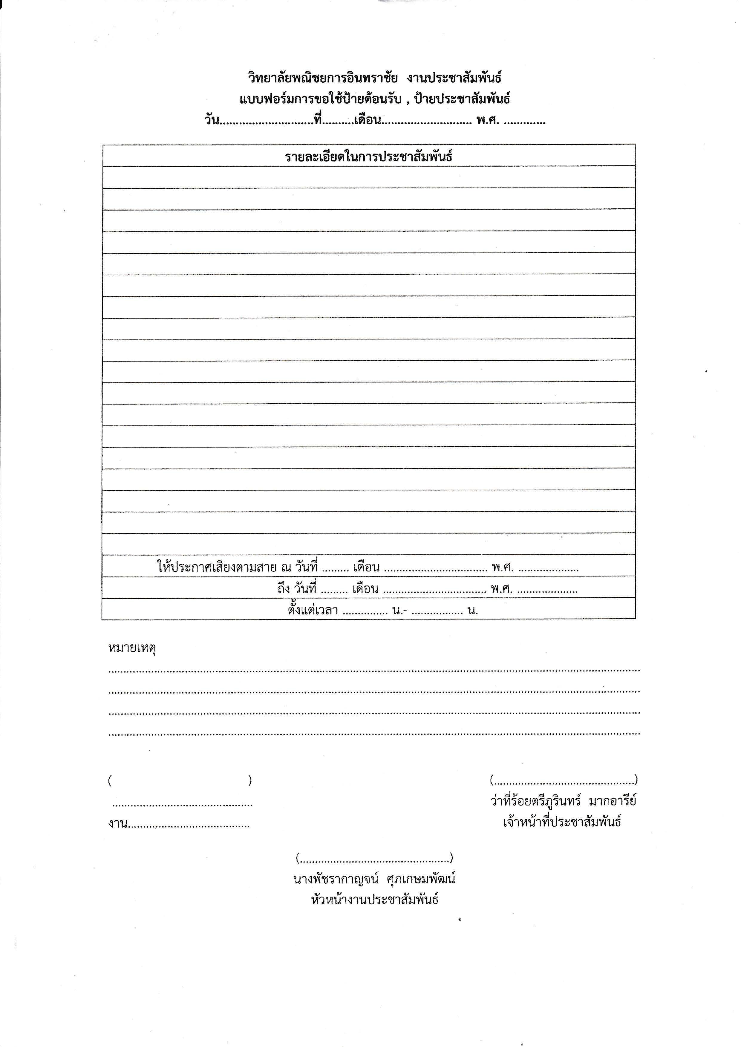 แบบฟอร์มการขอใช้ป้ายต้อนรับ, ป้ายประชาสัมพันธ์