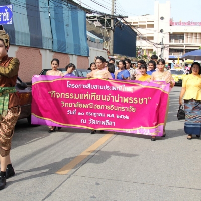 วันที่ 10 กรกฎาคม 2562 วิทยาลัยพณิชยการอินทราชัย จัดกิจกรรมโครงการสืบสานประเพณีไทย 'กิจกรรมแห่เทียนจำนำพรรษา' ณ วัดเทพลีลา พระอารามหลวง