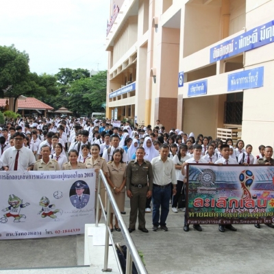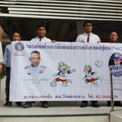 รณรงค์ต่อต้านการลักลอบเล่นการพนันทายผลฟุตบอลโลก 2018 โดยสถานีตำรวจนครบาลวังทองหลางร่วมกับวิทยาลัยพณิชยการอินทราชัย