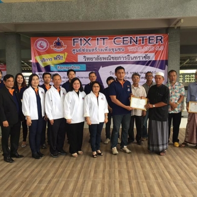 วิทยาลัยพณิชยการอินทราชัย จัดโครงการ Fix It Center ศูนย์ซ่อมสร้างเพื่อชุมชน Thailand 4.0 ให้บริการพี่น้องประชาชน ดังรายการต่อไปนี้ - ซ่อมและเปลี่ยนถ่ายน้ำมันเครื่องรถจักรยานยนต์ - ซ่อมและเปลี่ยนมุ้งลวด - ซ่อมเครื่องคอมพิวเตอร์ - ซ่อมเครื่องใช้ไฟฟ้า - สอนอาชีพการทำเฉาก๋วยนมสด - สอนอาชีพการทำน้ำยาล้างจานและน้ำยาปรับผ้านุ่ม - สอนอาชีพการทำช่อตุ๊กตารับปริญญา - สอนการออกแบบบรรจุภัณฑ์ผลิตภัณฑ์ชุมชน โดยได้รับความร่วมมือจาก วิทยาลัยเทคนิคธัญบุรี วิทยาลัยการอาชีพนวมิทราชูทิศ และท่านรองผู้อำนวยการวีระพันธ์ เอี่ยมสอาด รองผู้อำนวยการวิทยาลัยศิลปหัตถกรรมกรุงเทพ ในการสอนอาชีพทำน้ำยาล้างจานและน้ำยาปรับผ้านุ่ม ระหว่างวันที่ 15-16 กรกฎาคม 2560 ณ ชุมชนประสาทศีล