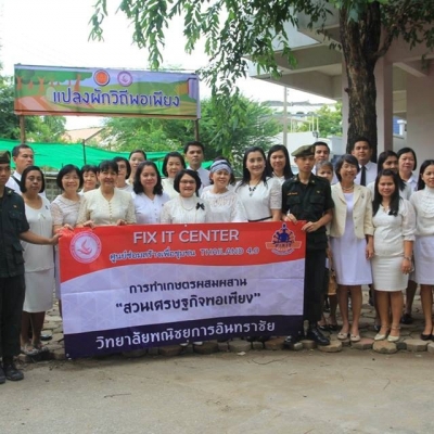 พิธีเฉลิมพระเกียรติสมเด็จพระเจ้าอยู่หัวมหาวชิราลงกรณ บดินทรเทพยวรางกูร เนื่องในโอกาสวันเฉลิมพระชนมพรรษา 65 พรรษา 28 กรกฎาคม 2560 การทำเกษตรผสมผสาน 'สวนเศรษฐกิจพอเพียง' วิทยาลัยพณิชยการอินทราชัย