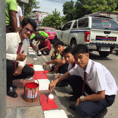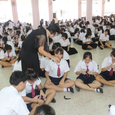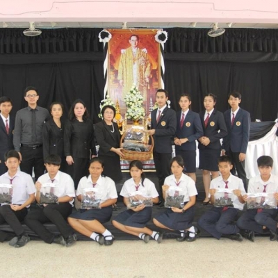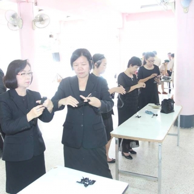 ผู้บริหาร ครู และนักเรียน นักศึกษา ร่วมกันทำริบบิ้น เพื่อนำไปแจกให้ประชาชนในชุมชนบริเวณใกล้เคียงวิทยาลัยฯ เมื่อวันศุกรที่ 21 ตุลาคม 2559 ณ อาคารเฉลิมพระเกียรติ