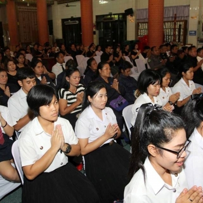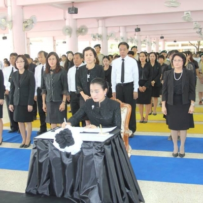 วิทยาลัยพณิชยการอินทราชัย คณะผู้บริหาร ครู เจ้าหน้าที่ นักเรียน นักศึกษา เข้าร่วมกิจกรรม สวดพระอภิธรรมพระบรมศพ ณ ศาลาการเปรียญ วัดเทพลีลา เมื่อวันที่ 25 ตุลาคม 2559