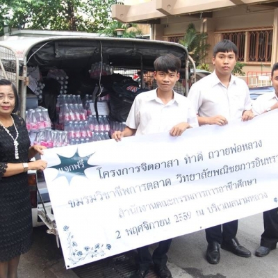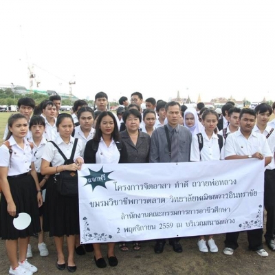 แผนกวิชาการตลาด วิทยาลัยพณิชยการอินทราชัย จัดกิจกรรมโครงการจิตอาสาทำดีถวายพ่อหลวง โดยนำนักศึกษาแผนกวิชาการตลาด และนักศึกษาแผนกค้าปลีก เข้าร่วมทำกิจกรรมจิตอาสาเก็บขยะ และนำน้ำดื่ม แอมโมเนีย จานชาม และเครื่องปรุงอาหาร มอบให้กับศูนย์อำนวยการอาสาสมัคร ณ มณฑลพิธีท้องสนามหลวง เมื่อวันที่ 2 พฤศจิกายน 2559