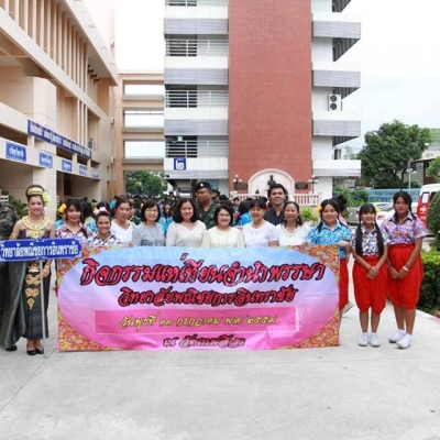 งานกิจกรรมนักเรียน นักศึกษา ตัวแทนนักเรียน นักศึกษา คณะครู เจ้าหน้าที่ ร่วมกิจกรรมเดินรณรงค์และประชาสัมพันธ์ในการลงประชามติ ร่วมกับสำนักงานเขตวังทองหลาง ณ บริเวณแยกประชาธรรม ถนนประดิษฐมนูธรรม เมื่อวันที่ 4 สิงหาคม 2559